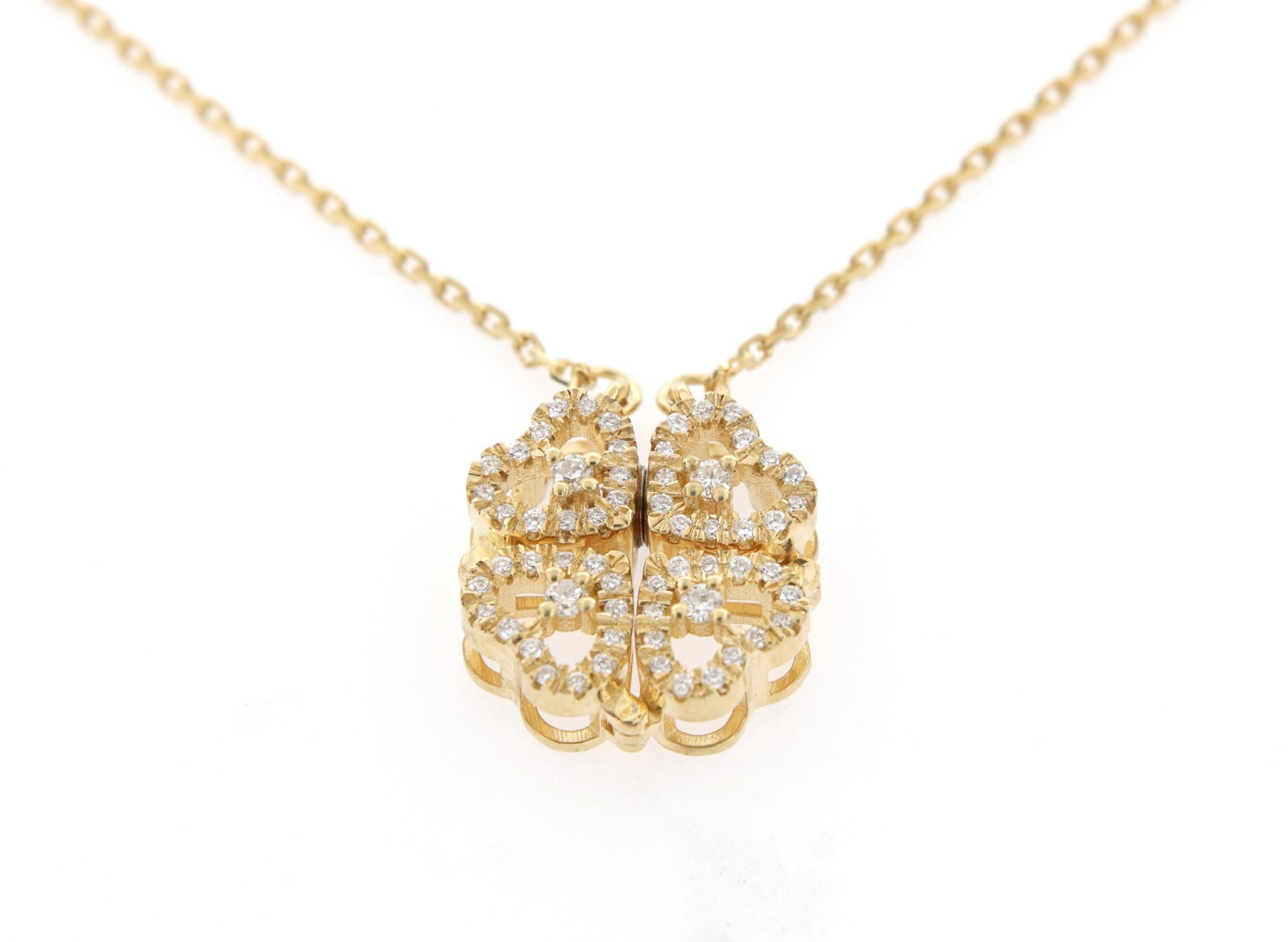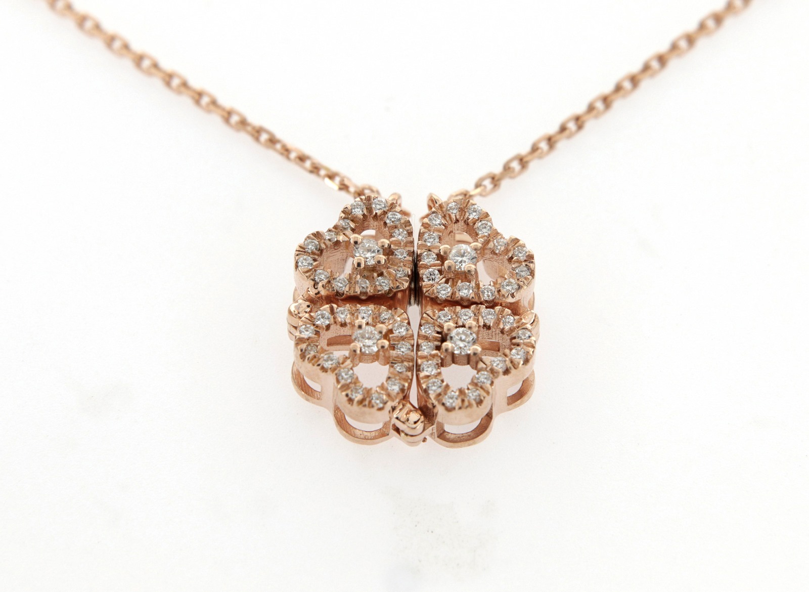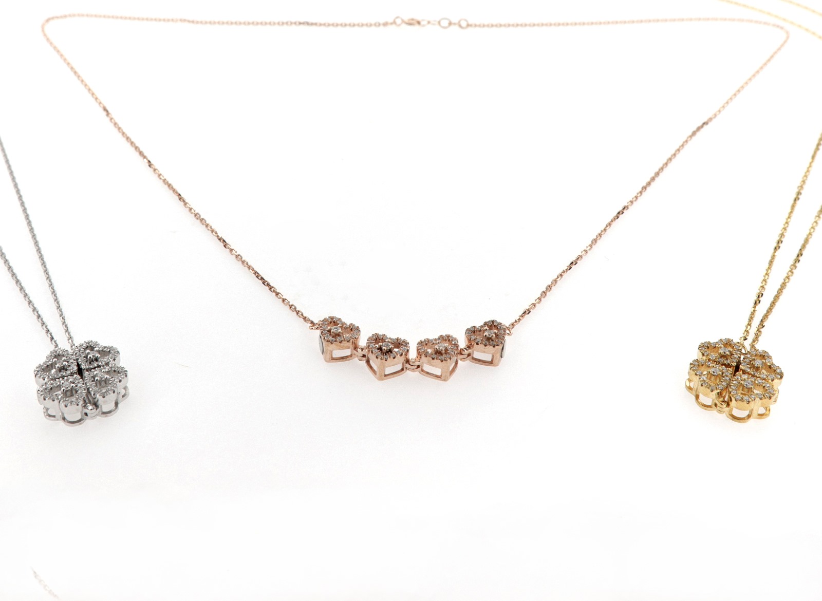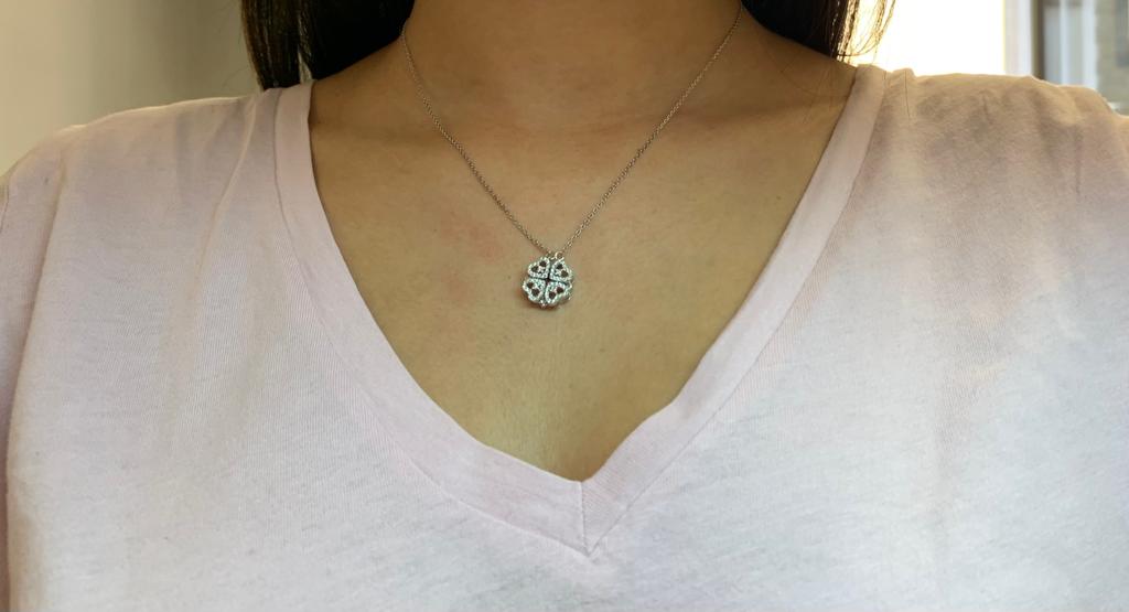 Girocollo con pendente con cuori che si trasforma in quadrifoglio.